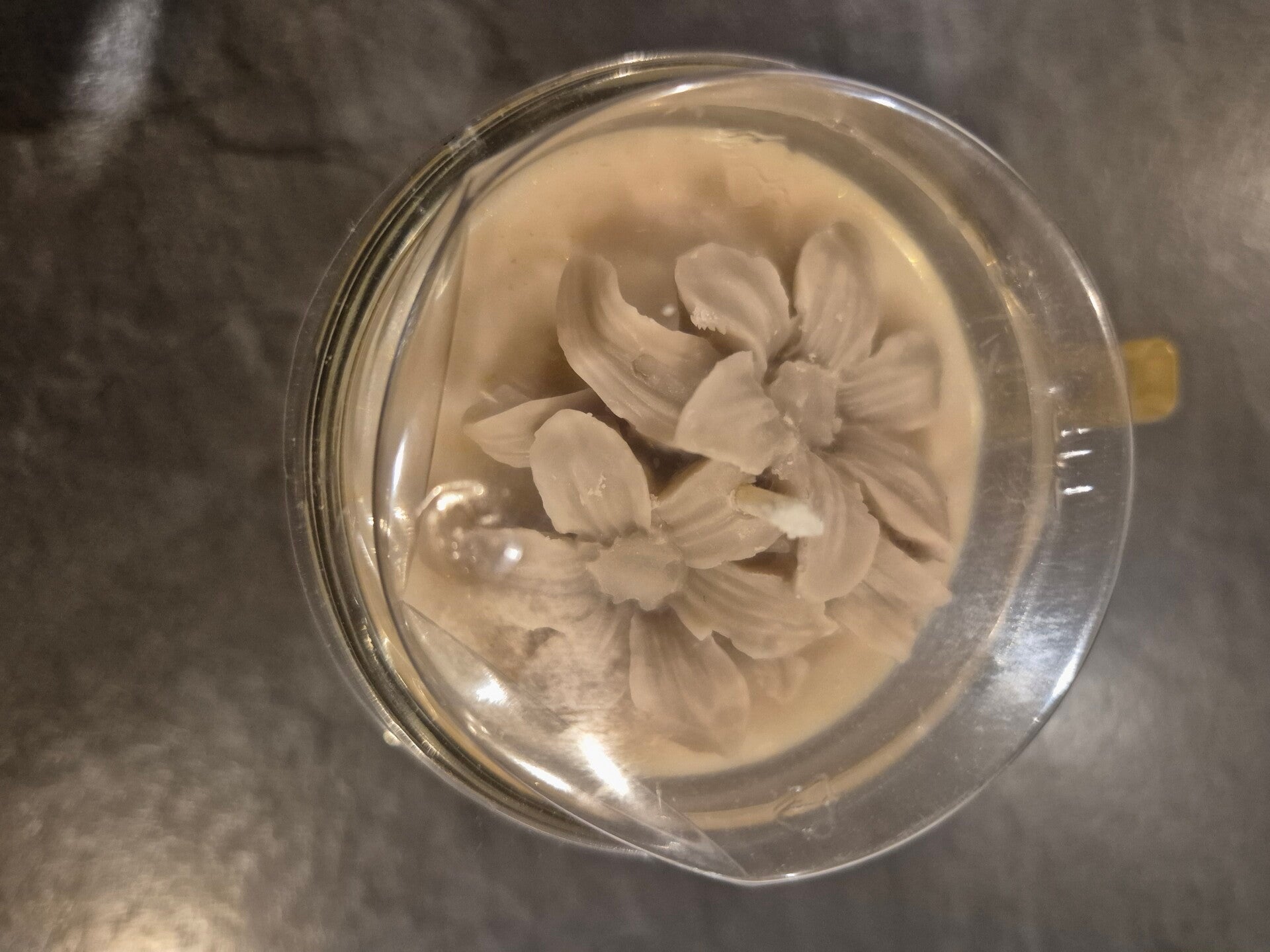 Bougie dans un verre afin de limiter les risques de débordements et d'incendie, pour une sécurité en respectant les normes anti étouffement
